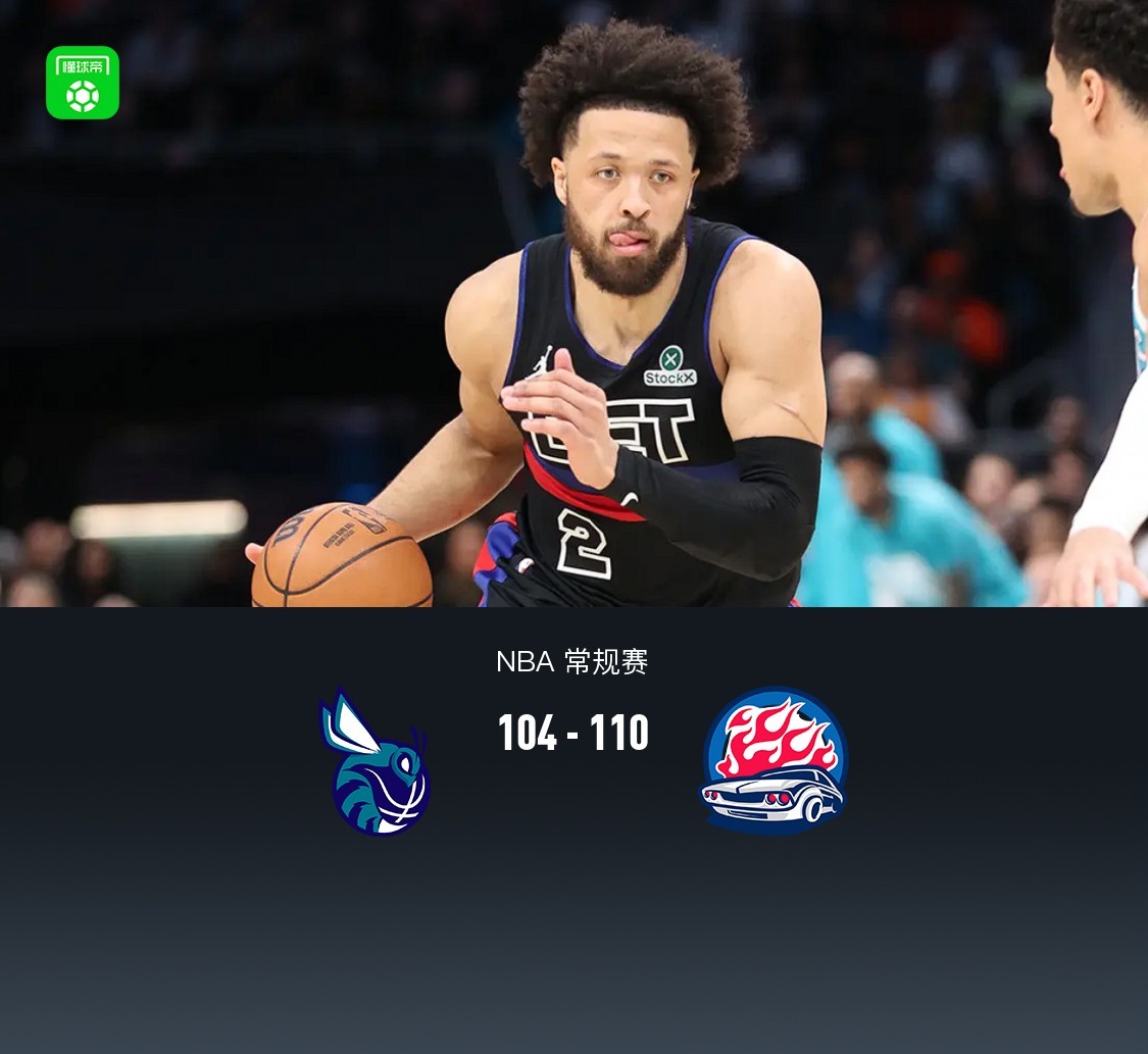 第四节,前半节双方拉锯,活塞保持10分上下领先,随后黄蜂克努佩尔连续两记三分掀起反扑,比赛最后2分钟米勒连续得分迫近至4分,活塞坎宁安、哈里斯稳定局面,最终黄蜂104-110不敌活塞。